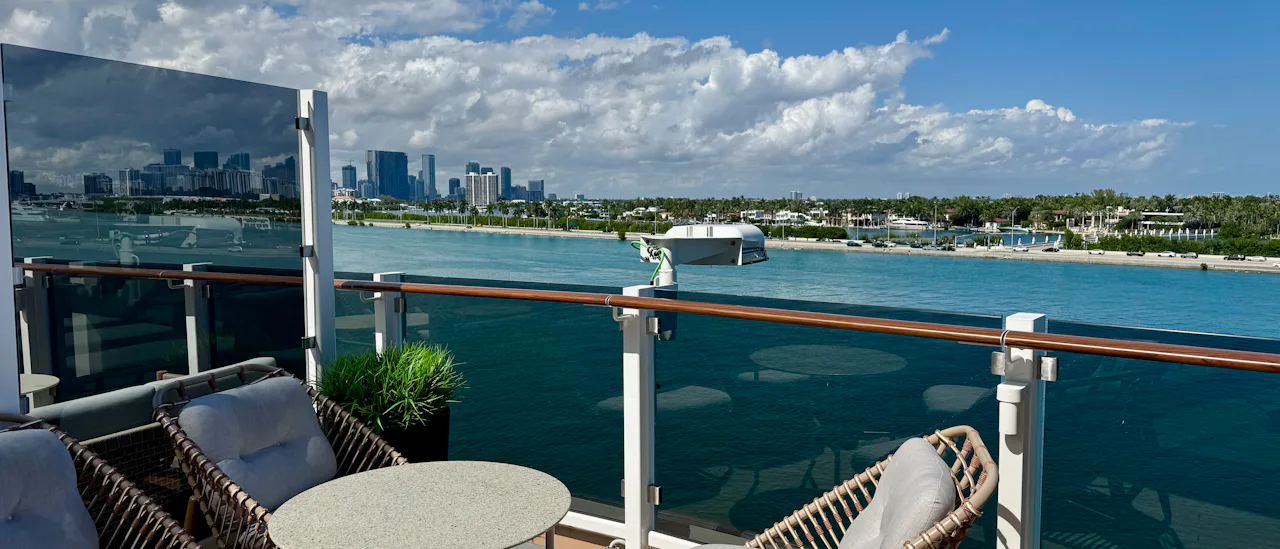 Lähdön tunnelmia Miamin satamassa laivan kannella.