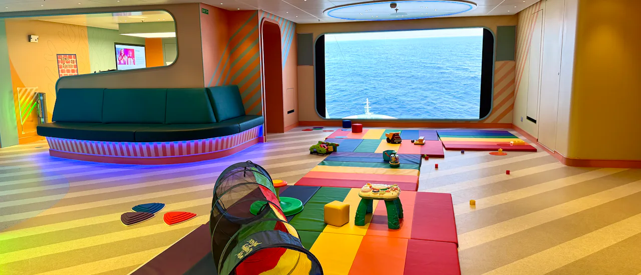 Kaikissa ravintoloissa oli syöttötuoleja näkyvillä ja tarjoilijat tuovat ne suoraan pöytään, mikäli lasten kanssa saapuu ravintolaan. Illallisella pääruokaravintolassa viereisen pöydän lapsille tuotiin puuhakirjat, jotta he jaksaisivat paremmin istuskella pöydässä aikuisten ruokaillessa. Hyttiin saa pienille lapsille matkapinnasängyn, mutta on hyvä huomioida, että hygieniasyistä laivoilla ei ole pottia. Kannattaa siis ottaa oma matkapotta mukaan, jos pöntöllä käyminen ei vielä luonnistu, mutta lapsi ei ole enää täysin vaippaikäinen.