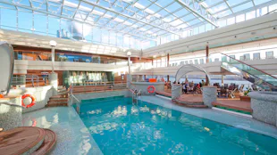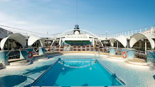 - Yacht Clubilla on oma rauhallinen, pehmustetuin aurinkopedein varustettu aurinkokansi, uima-allas ja baari