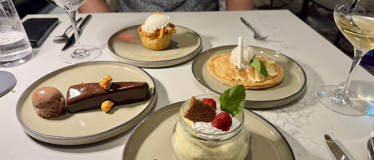 Palomar ravintolan jälkiruoat. Tarjoilija halusi välttämättä tuoda meille kaikki NELJÄ jälkiruokaa.