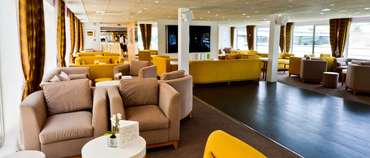The tastefully decorated lounge is situated at the front of the ship and provides panoramic views. Here, you can enjoy cocktails, play games, dance, and partake in various forms of entertainment.