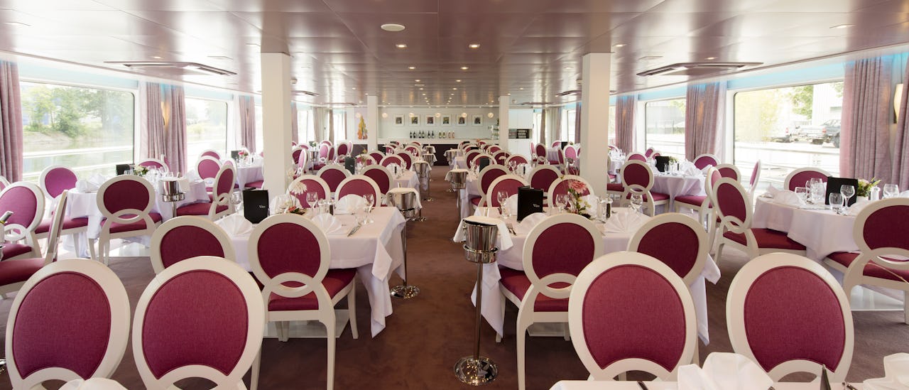 Located on the upper deck, the restaurant is where all meals are served during your cruise. It seats all guests at tables which vary in size with a panoramic view. The atmosphere is casual but elegant.
