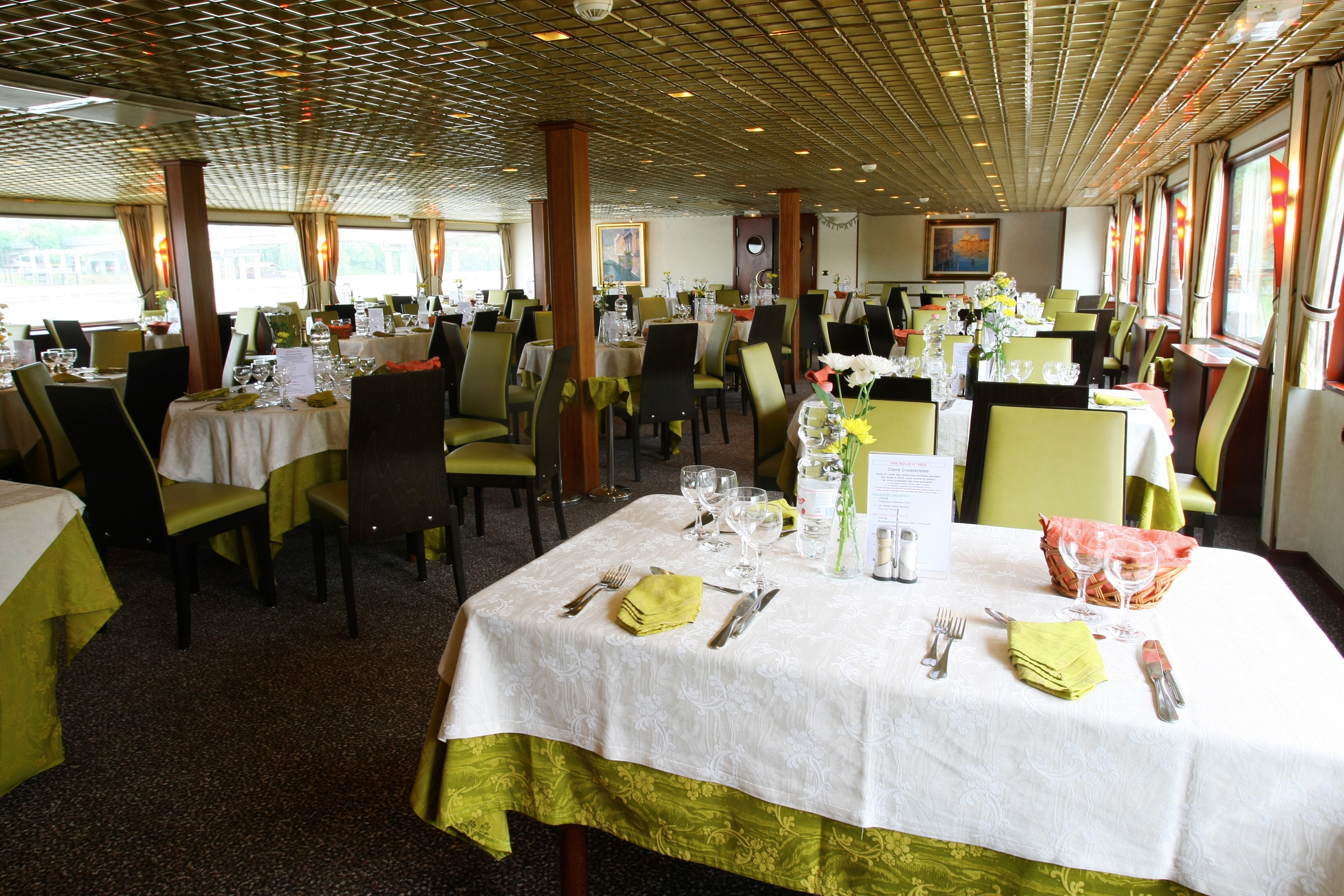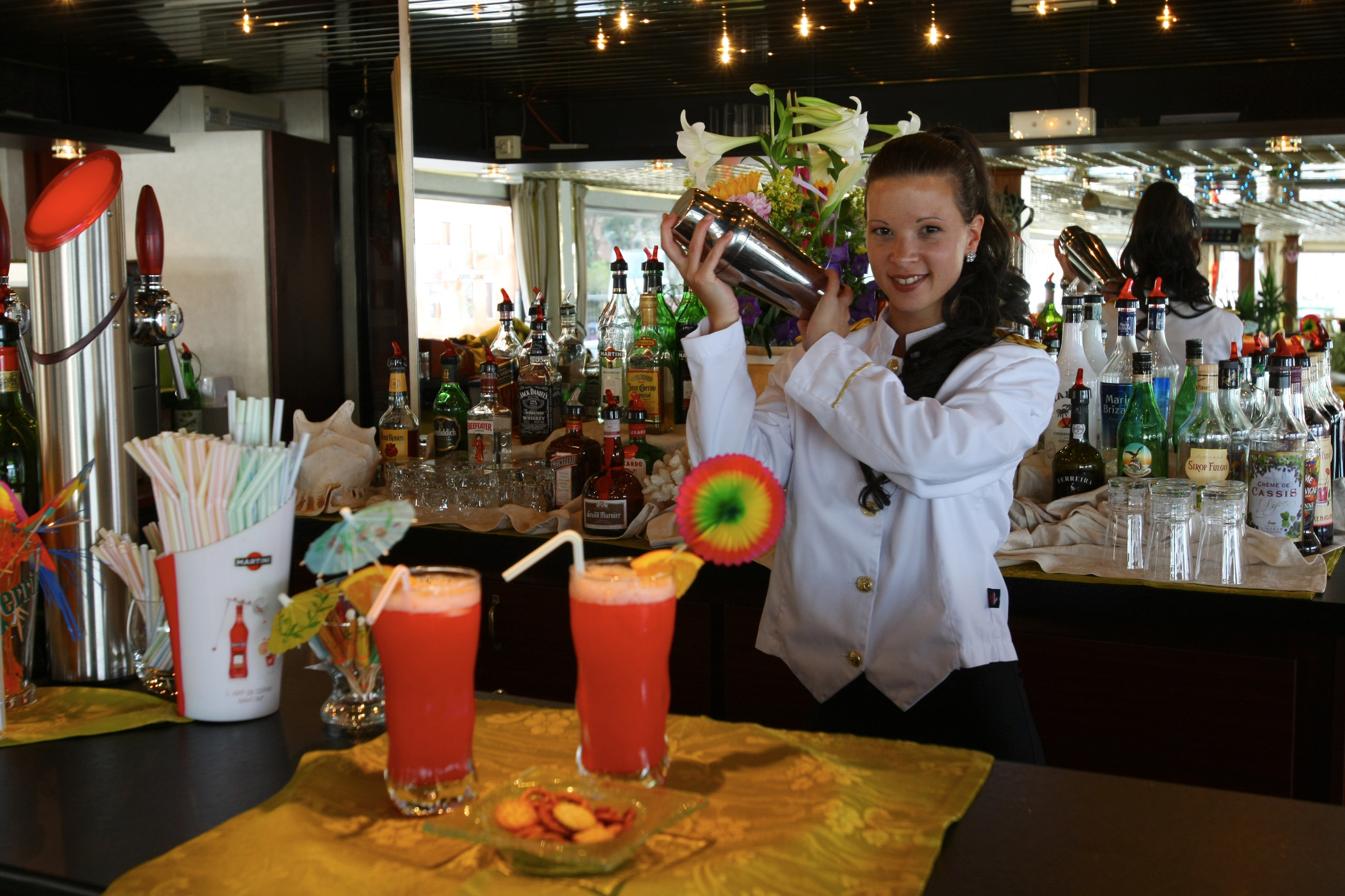 The lounge tastefully decorated, is located at the front of the ship and offers panoramic views. Cocktails and games, dancing, and other forms of entertainment all happen here.