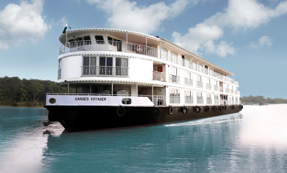 Risteile luksustason jokilaivalla Intian Ganges -joella. Risteilyn hintaan sisältyy Intian sisäiset lennot.