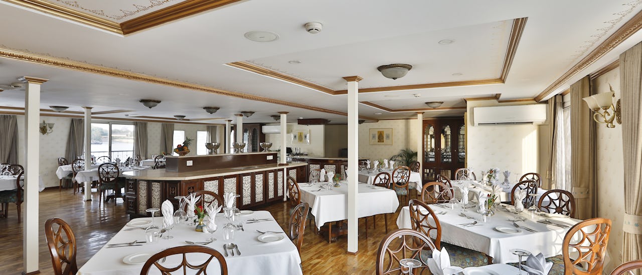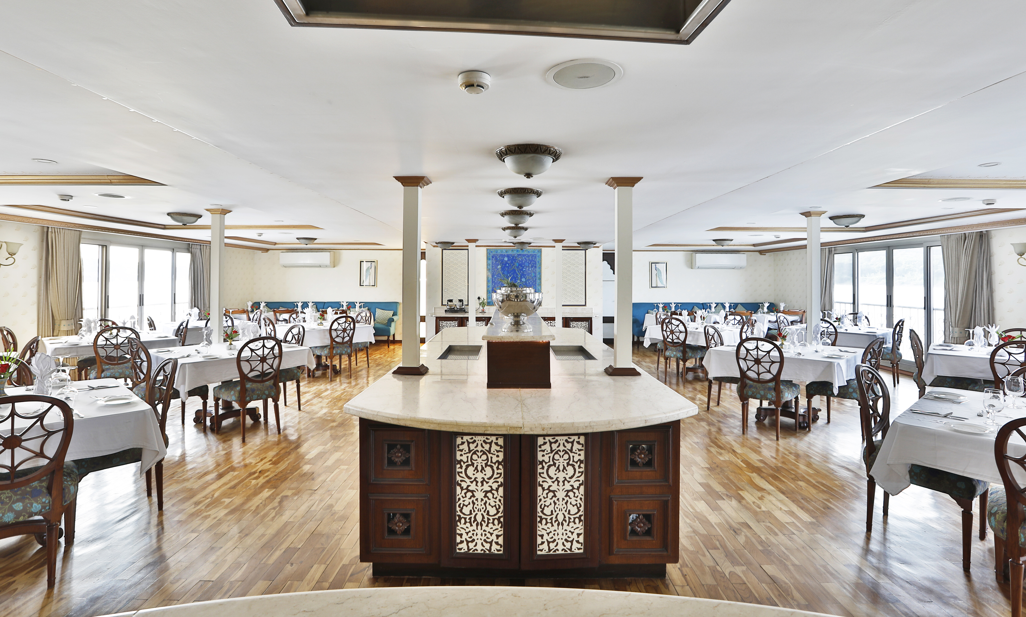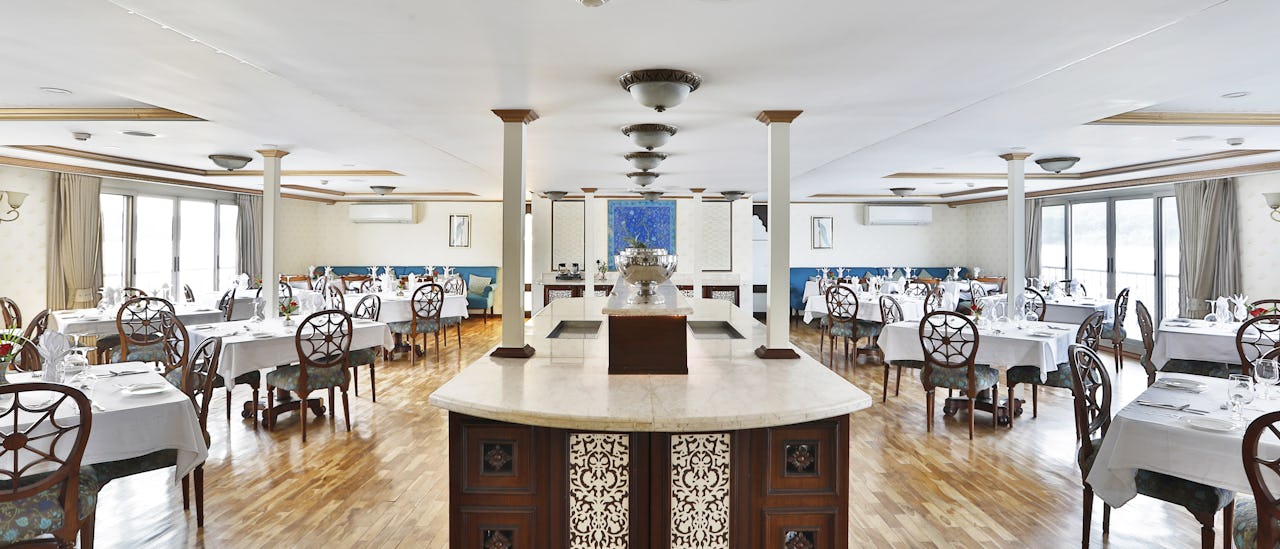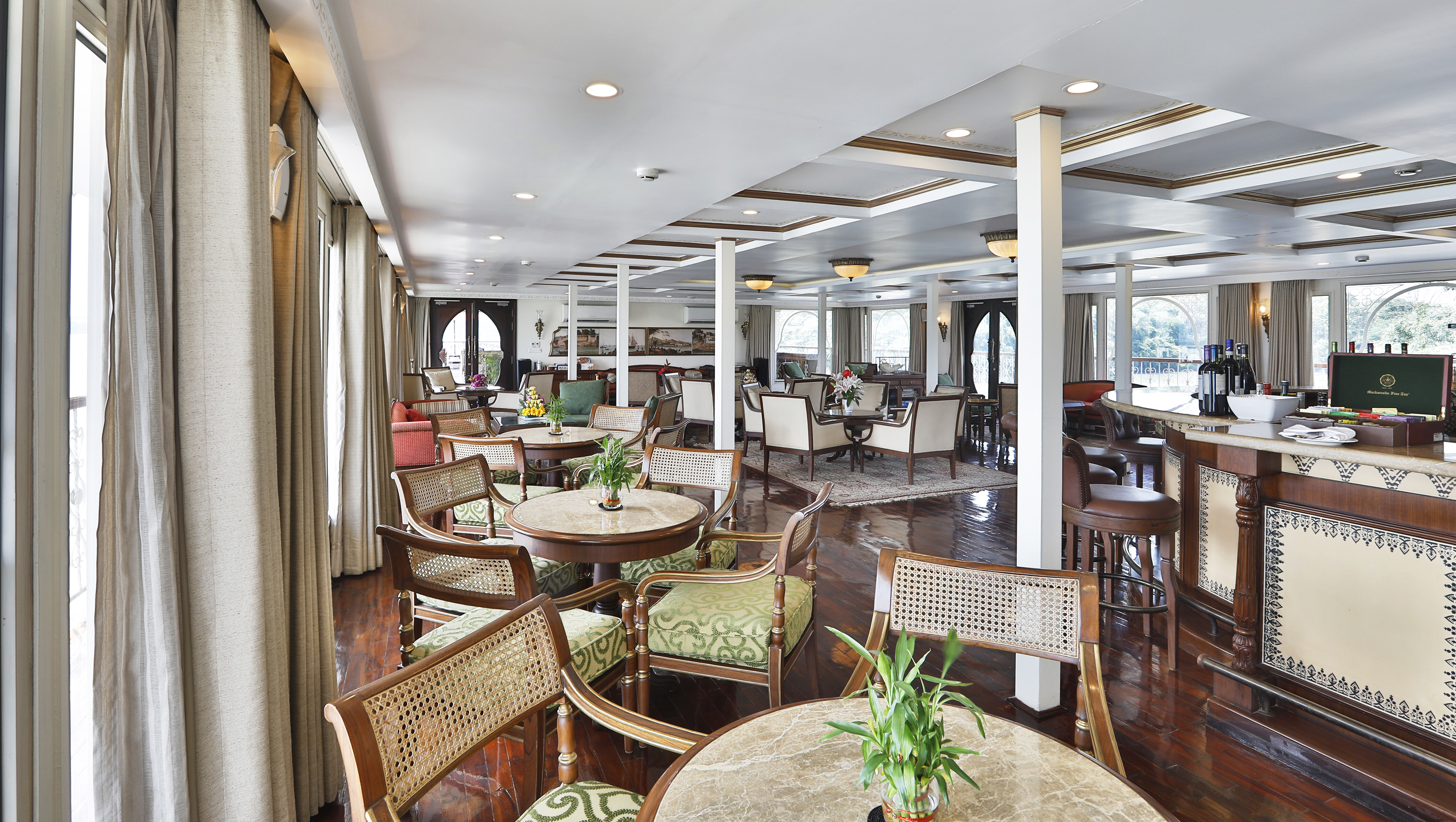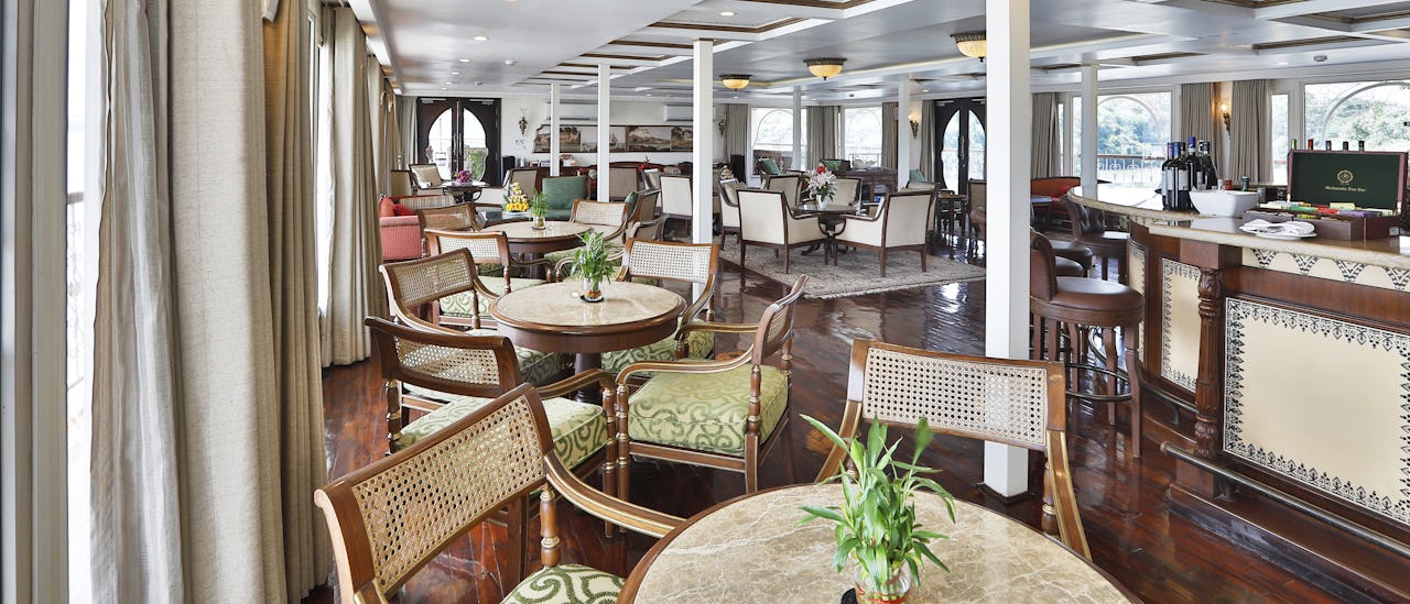 A tribute to the incredibly flavourful cuisine of India, the East India Dining Room delivers one sumptuous meal after another throughout your journey. Indulge in delicious dishes crafted with fresh local ingredients. Situated on the main deck, this spacious restaurant offers magnificent views through its large panoramic windows. While breakfast and lunch are buffet-style, dinner is served on a plate service basis.