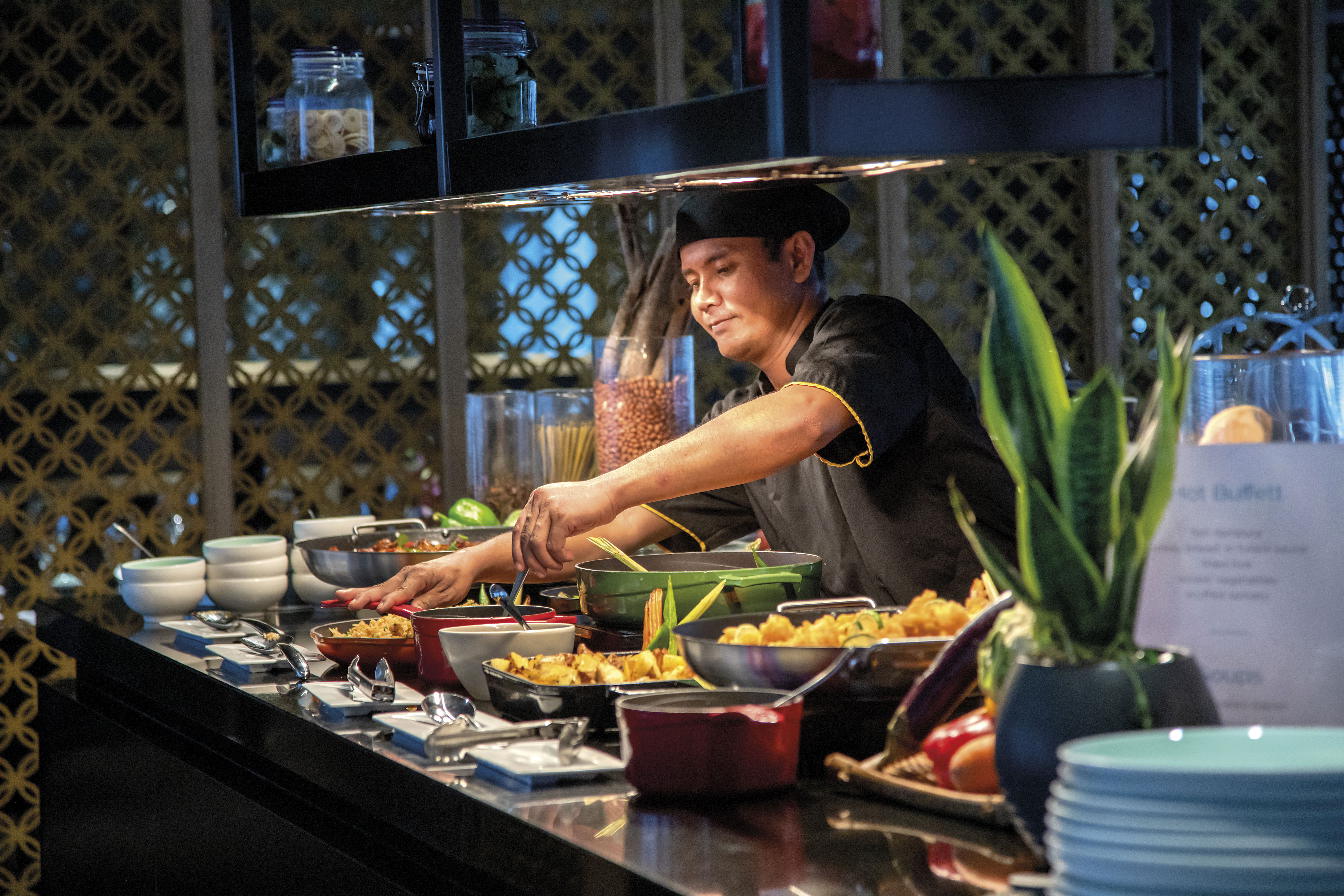 All buffet meals feature an action station where you can watch as your food is prepared in front of you