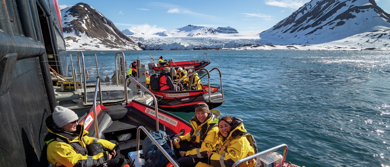 Framilla on tutkimusmatkoja varten täysin varusteltu kansi, josta pääset turvallisesti ja helposti maihin vakailla Polarcirkel-veneillä.