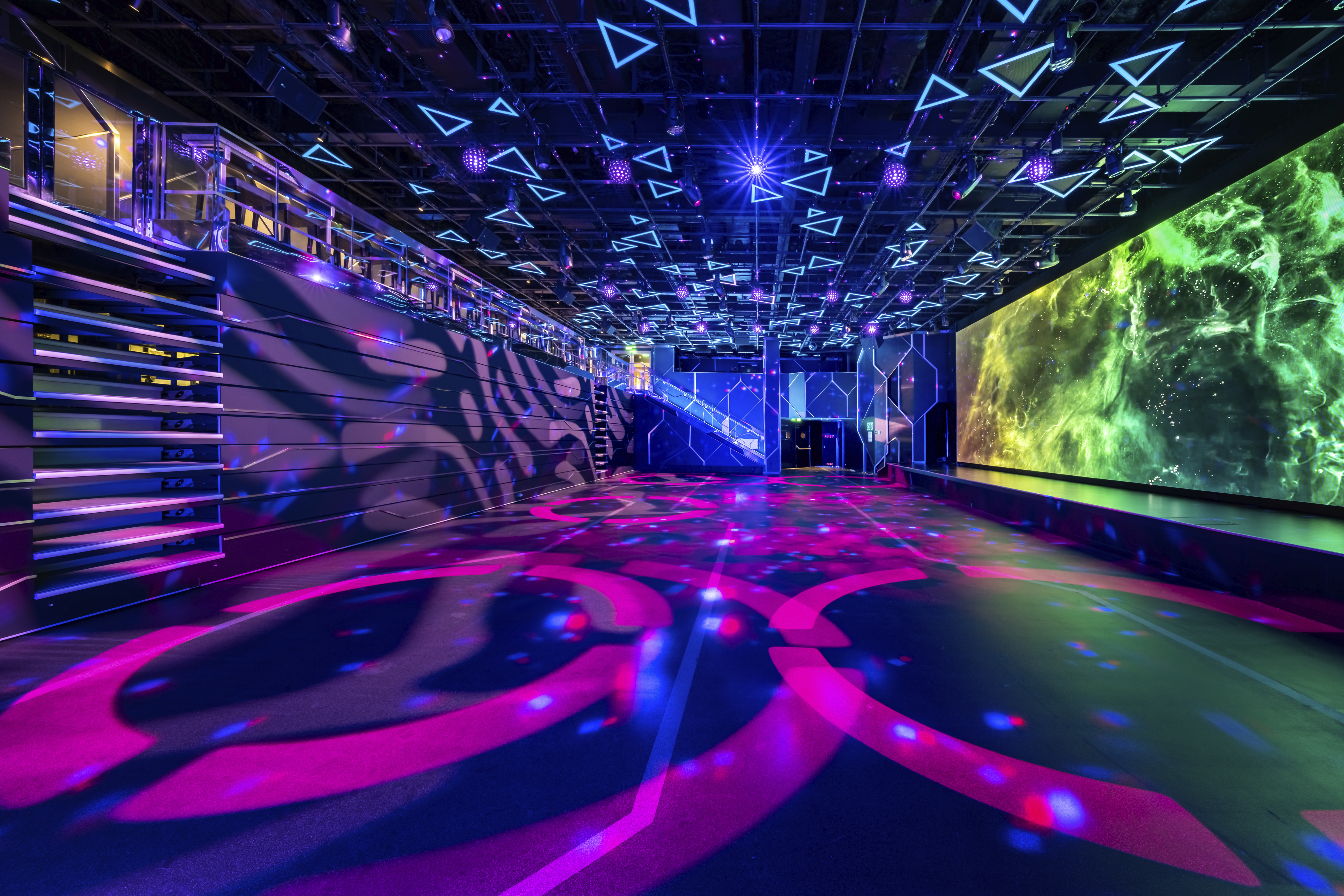 Promenadilla valtava LED -katto, missä näytetään siihen suunniteltuja esityksiä.
