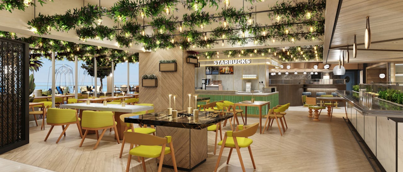 Laivan sydämessä on Penrose Atrium, kolmikerroksinen tila mikä pitää sisällään ravintoloita ja baareja. Tilan on suunnitellut Miamilainen Studio Dado.