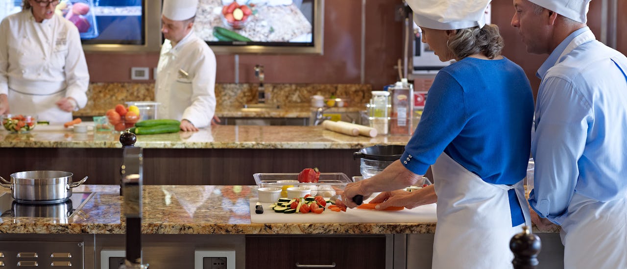 Valmista suosikkiannoksia Oceanian tähtikokkien opastuksella huippumodernissa The Culinary Center -opetuskeittiössä.