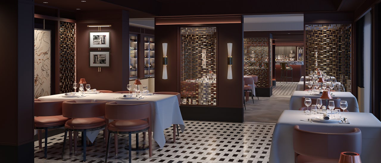 Herkullisia grilliannoksia kuten côte de boeuf Pablo Picasson taiteen ympäröimänä Prime 7 -ravintolassa – yksi upeista ruokailuelämyksistä. Regent Seven Seas on All Inclusive.
